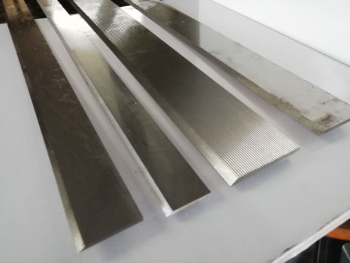 Cuchillos Rectos lisos y estriados de alta calidad y resistencia con una precisión máxima de corte para todas las máquinas cortadoras, peladoras y chipiadoras, de hasta 1200 mm de longitud de acero compuesto 18%W, cuchillos estriado